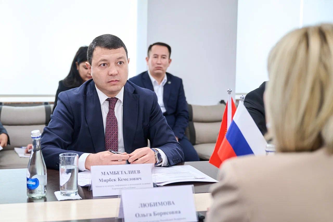 В рамках рабочего визита в Бишкек встретилась с Министром культуры, информации и молодежной политики Кыргызской Республики Мирбеком Мамбеталиевым