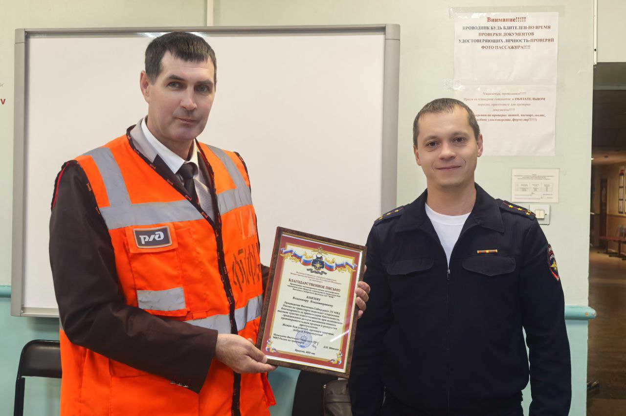 Транспортные полицейские поблагодарили проводника пассажирского вагона за содействие в