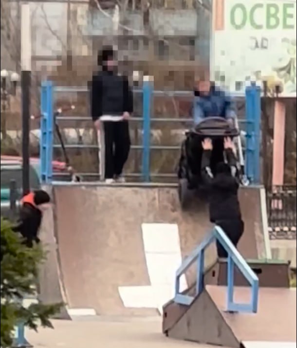 В ходе мониторинга сети Интернет сотрудниками полиции в одном из мессенджеров выявлена видеозапись, на которой группа подростков наносит повреждения чужой детской коляске, сбрасывая ее с платформы для скейтбординга.