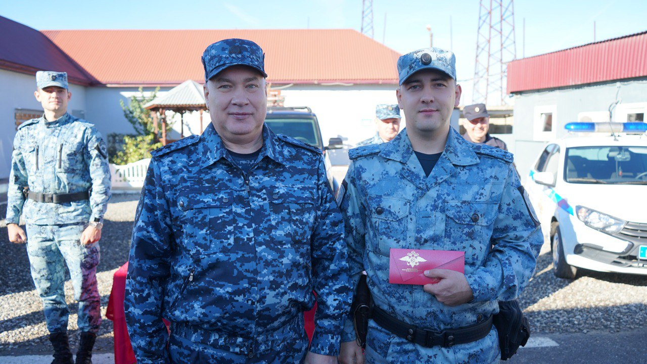 В торжественной обстановке руководитель вручил отличившимся сотрудникам сводного отряда награды, поздравил коллег с приближающимся праздником, а также поблагодарил сотрудников за достойное выполнение служебных обязанностей.