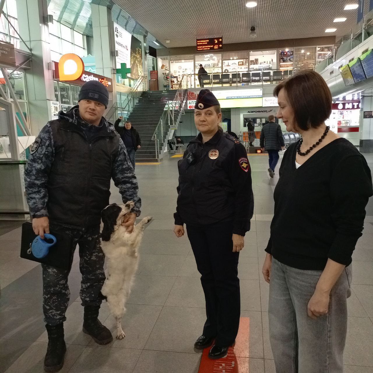 Общественник осмотрела специальное помещение для задержанных, также ознакомилась с информацией на специальных стендах, отметив их актуальность. Также она пообщалась с сотрудниками, несущими службу в аэровокзале, узнала об особенностях работы кинологов в аэропорту.