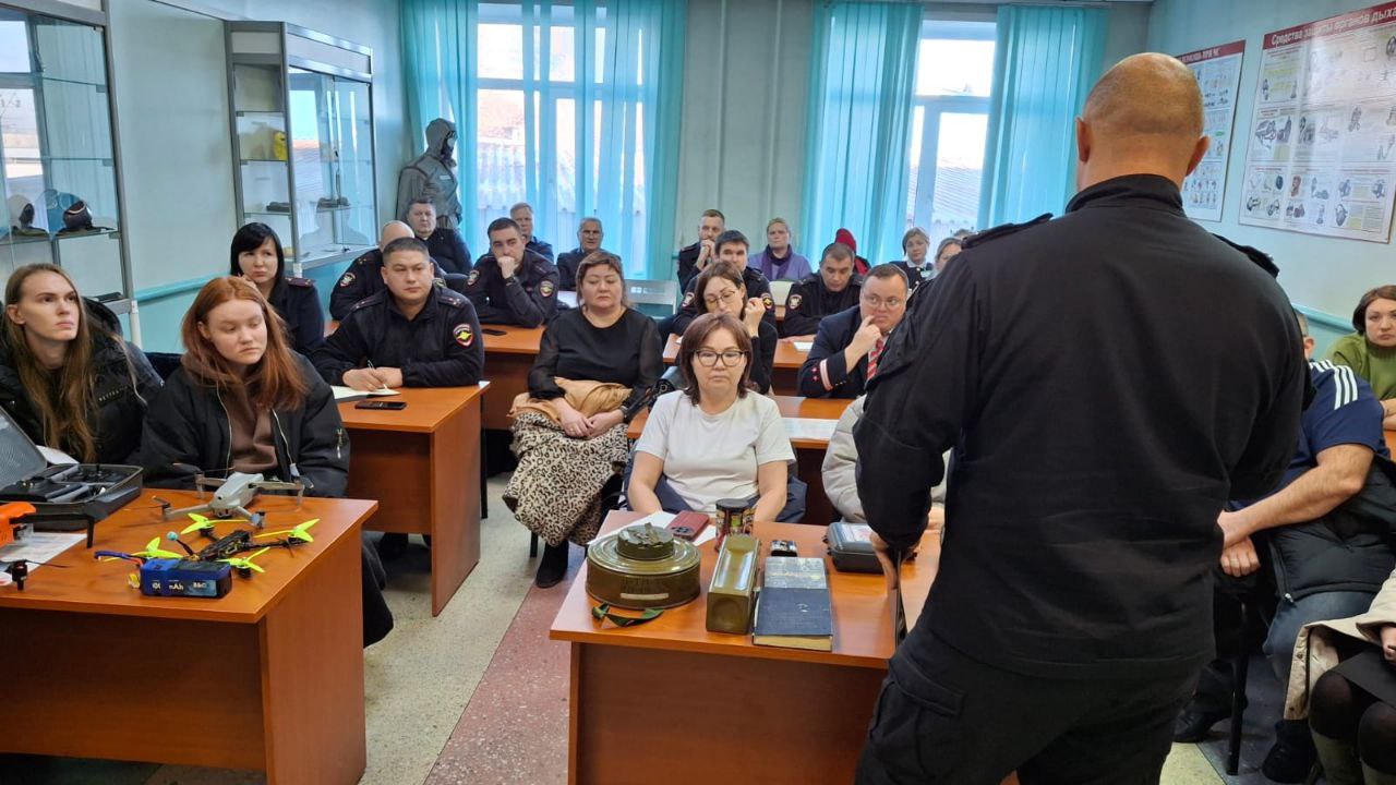 Присутствующим показали различные виды боеприпасов, взрывных устройств, участники занятия рассмотрели технические характеристики и способы их обнаружения. Кроме этого, на занятии затронули тему противодействия беспилотным летательным аппаратом.
