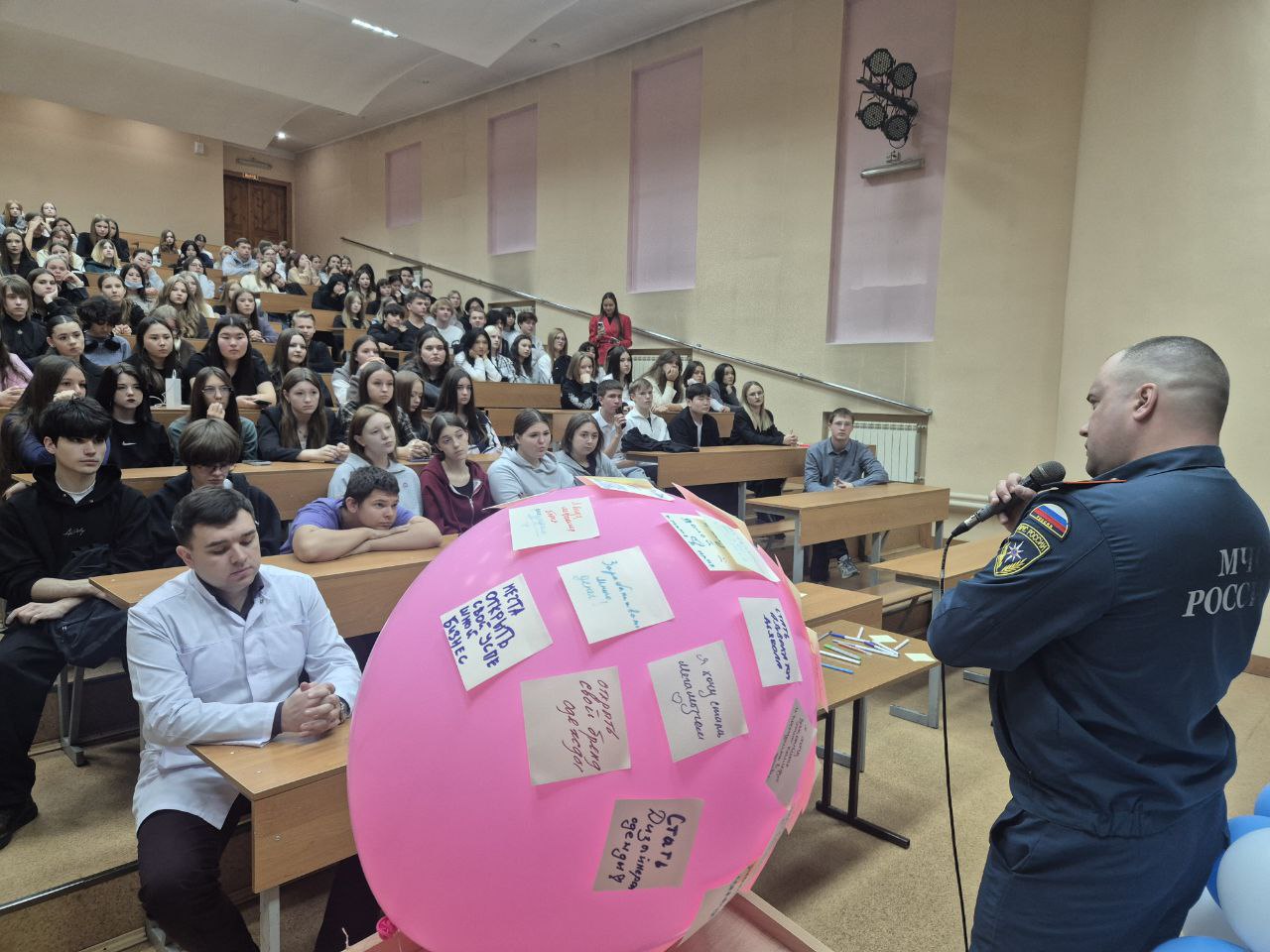Юношам и девушкам предложили написать на стикерах свои заветные желания, планы на будущее, мечты. Эти стикеры молодые люди прикрепили к воздушному шару, символизирующему жизнь.
