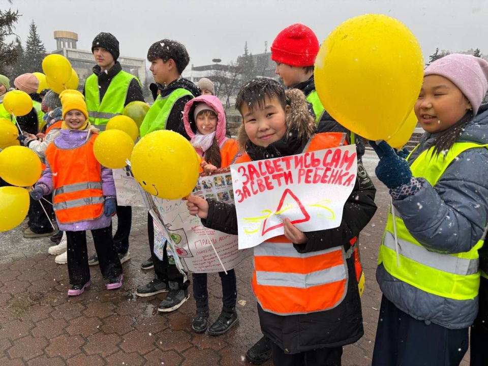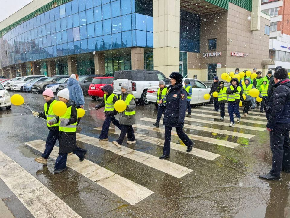 Сотрудники Госавтоинспекции совместно с Лабораторией безопасности провели с учащимися школы №9 города Иркутска профилактическую акцию «Шагающий автобус»