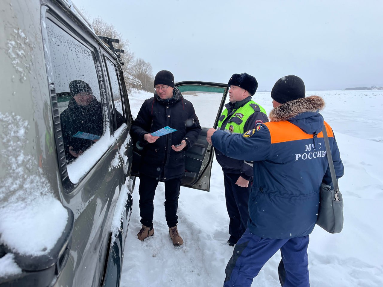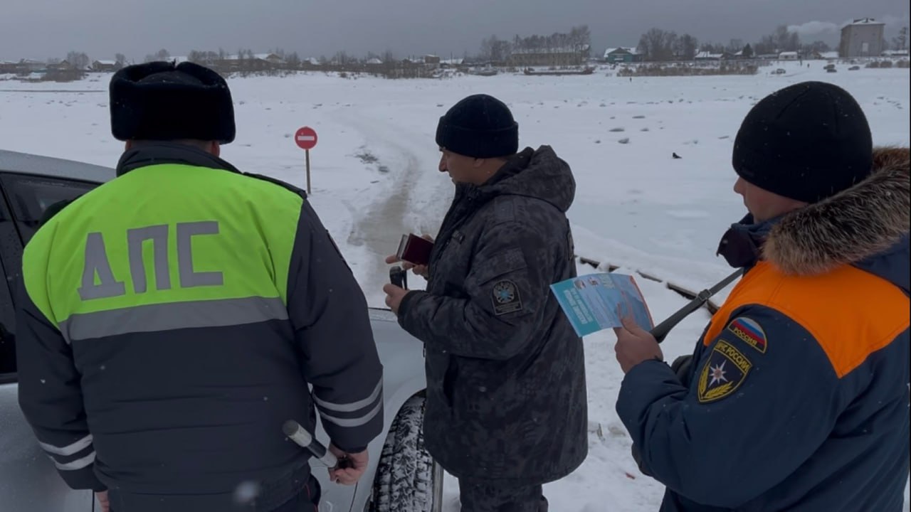 В целях предотвращения дорожно-транспортных происшествий и гибели граждан на водных объектах, сотрудники Межмуниципального отдела МВД России «Киренский» с сотрудниками Государственной инспекцией по маломерным судам и Росрыболовства проводят профилактические мероприятия на ледовых переправах через реку Лена в Киренском районе.