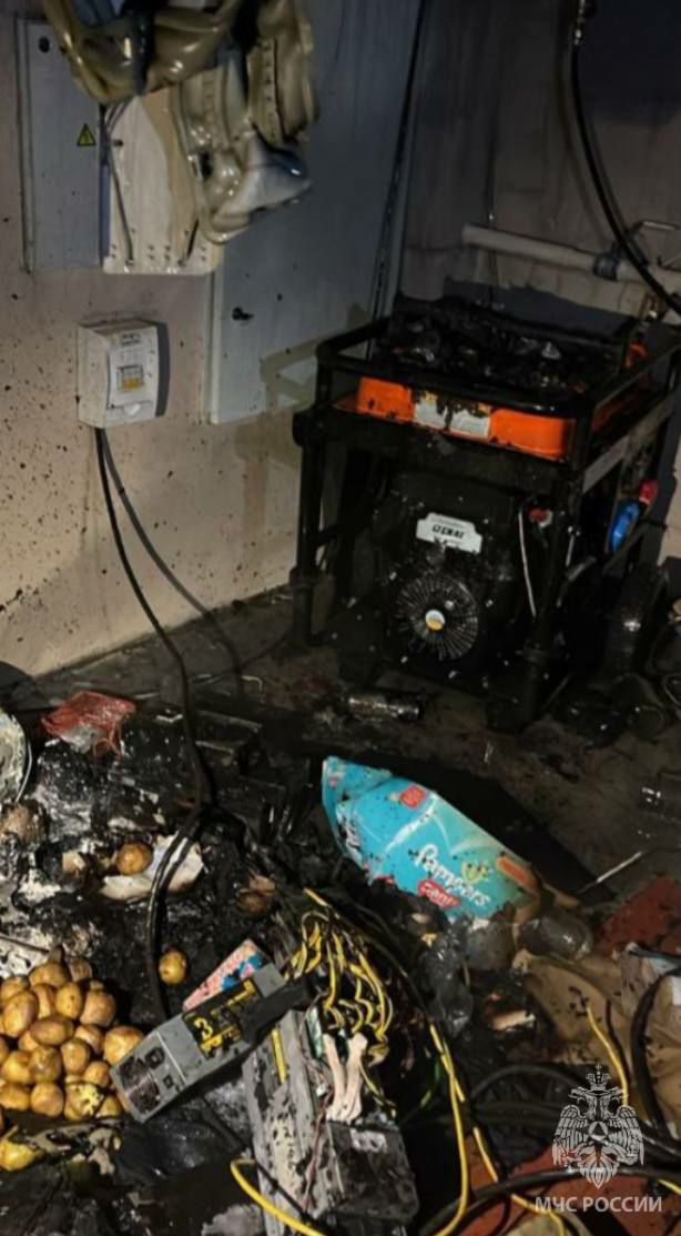 Внутри гаража обнаружены майнинговое оборудование. В результате пожара повреждены личные вещи на 5 квадратах, бокс закопчен по всей площади. Условием развития послужило позднее обнаружение.