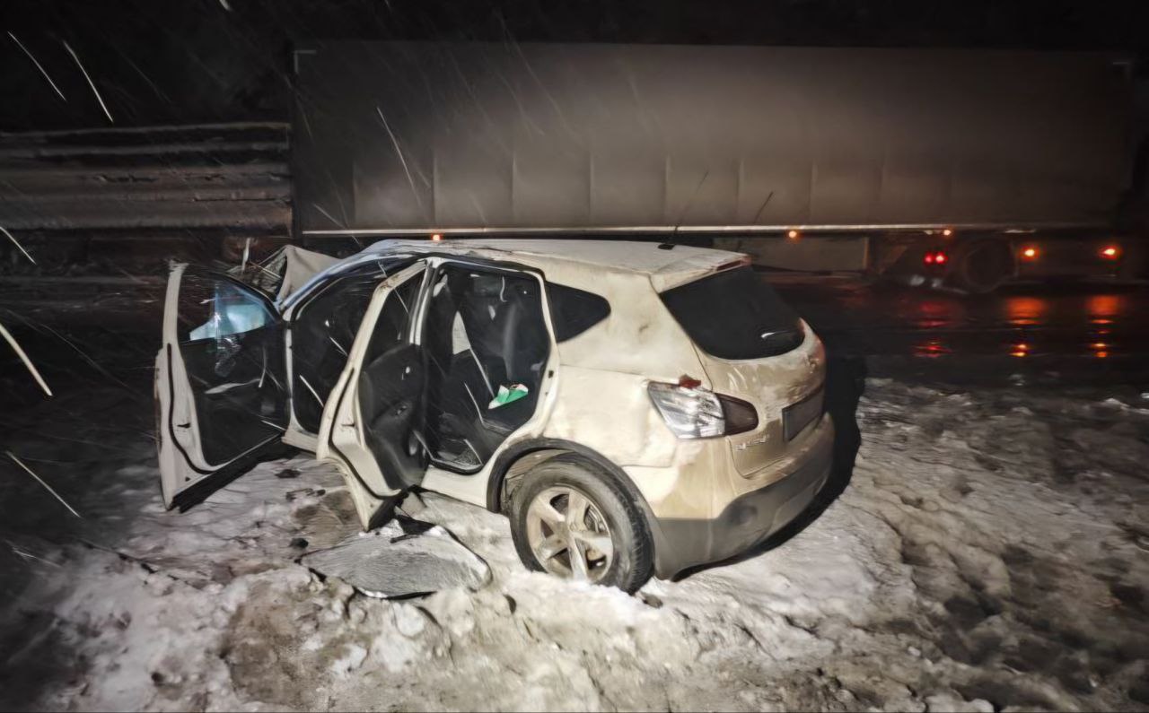 Предварительно, водитель автомобиля «Nissan Qashqai» не справился с управлением, совершил наезд на ограждение, а затем выехал на полосу встречного движения, где столкнулся с большегрузом «Scania R440».