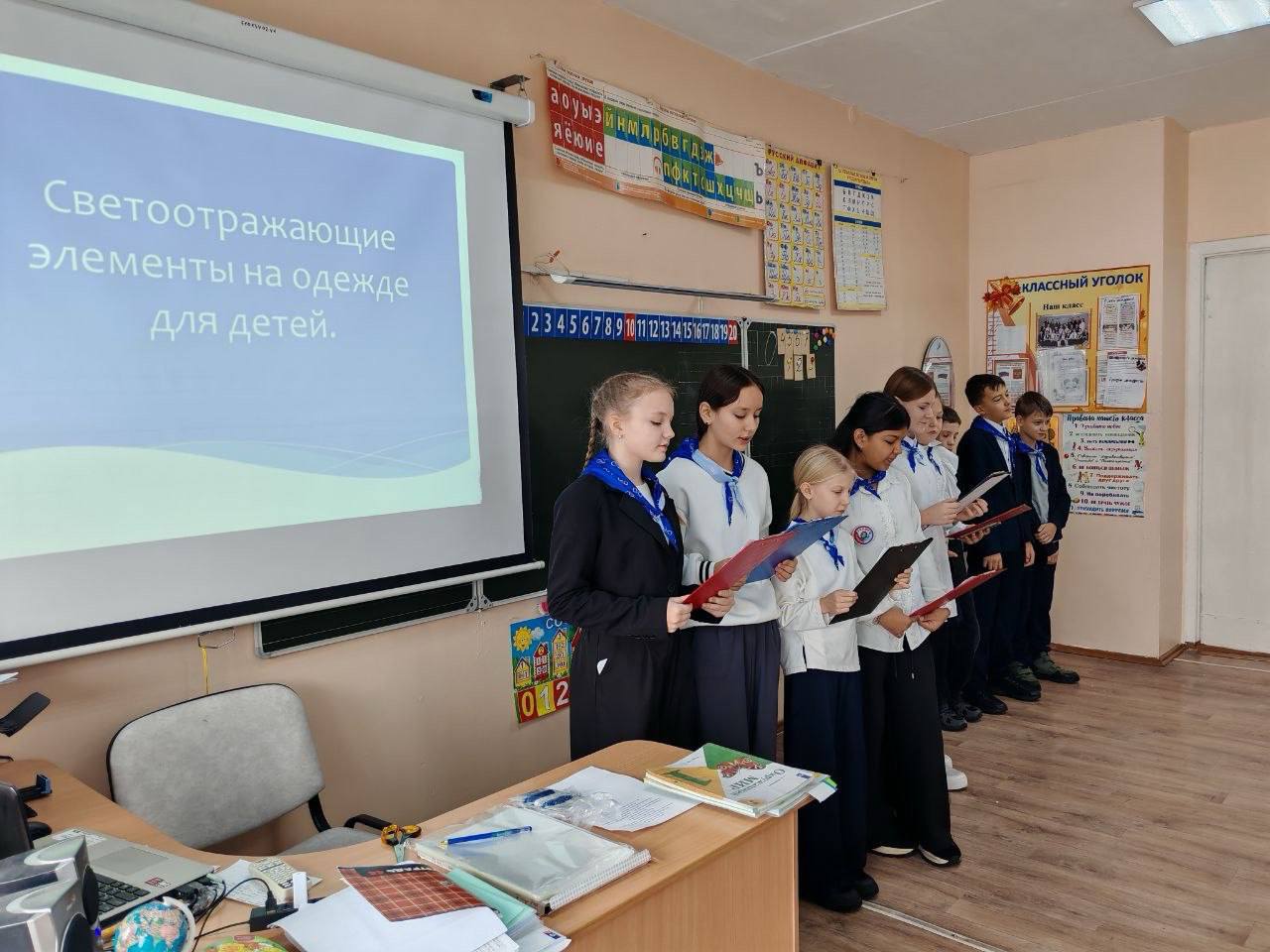 Педагоги вместе с юными инспекторами движения на классных часах и пятиминутках дорожной безопасности рассказывали детям о важности использования световозвращающих элементов.