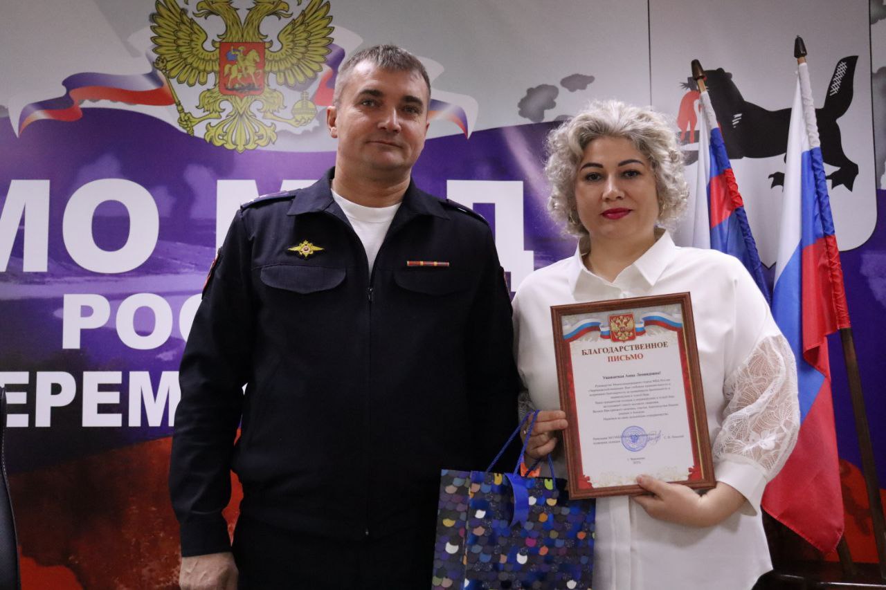 Начальник территориального отдела полковник полиции Сергей Линский лично поблагодарил Анну Орлову.