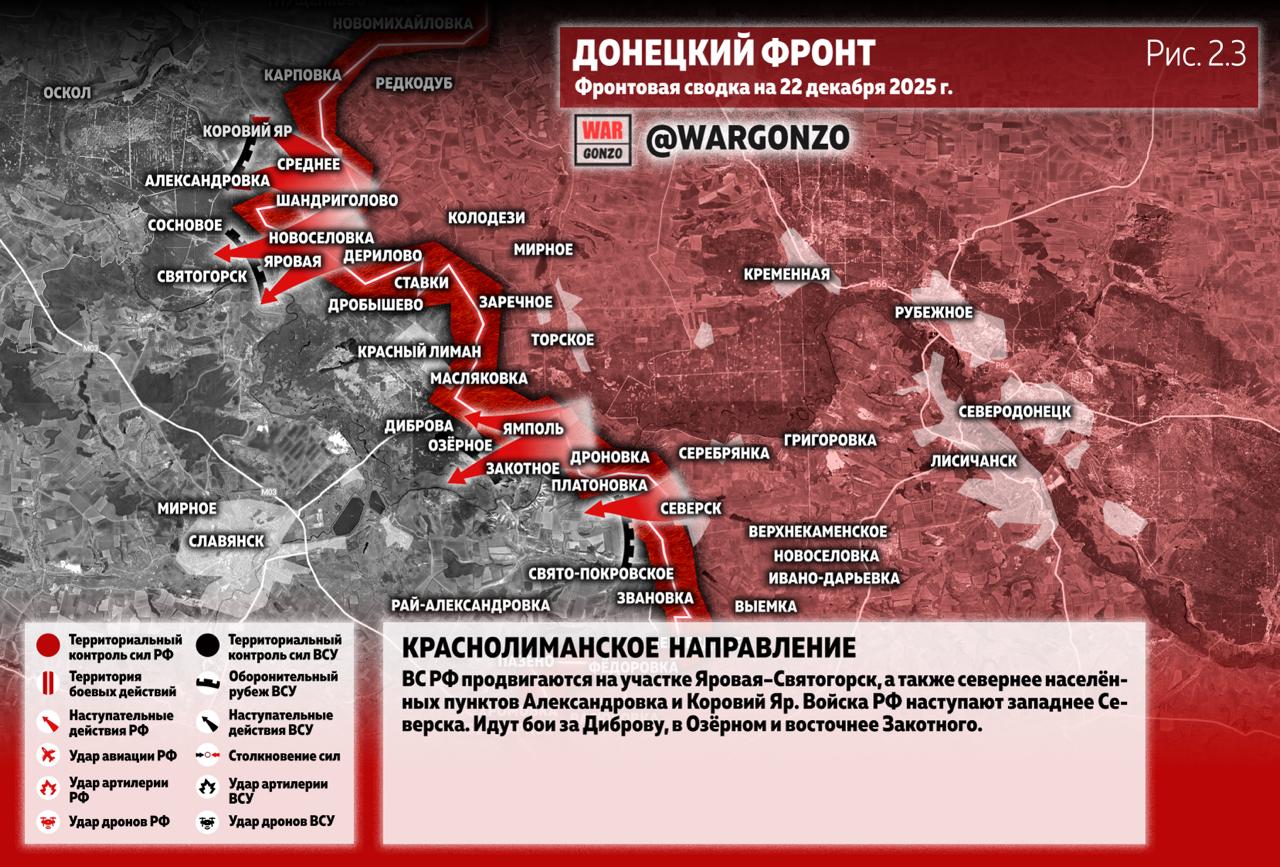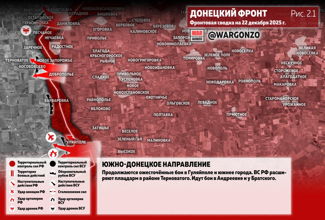 Фронтовая сводка на утро 22.12.25