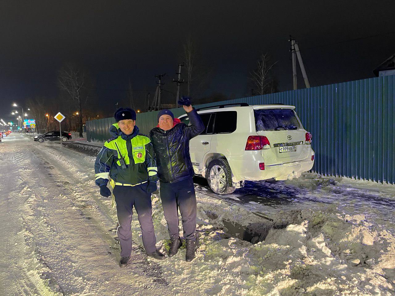 В Иркутске сотрудники Госавтоинспекции помогли водителю вытащить застрявший в снегу автомобиль