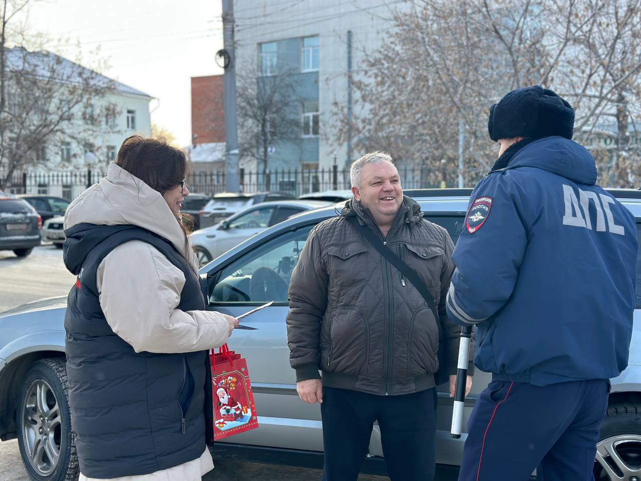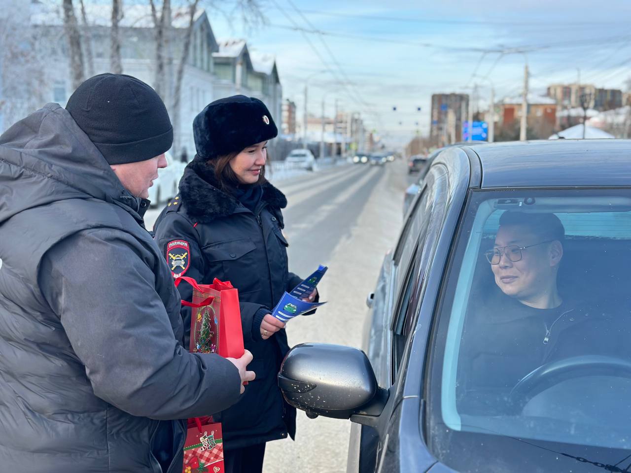 В рамках мероприятия автоинспекторы совместно с представителями одной из автошкол города Иркутска останавливали водителей, поздравляли их с наступающим Новым годом и желали им безопасных дорог.