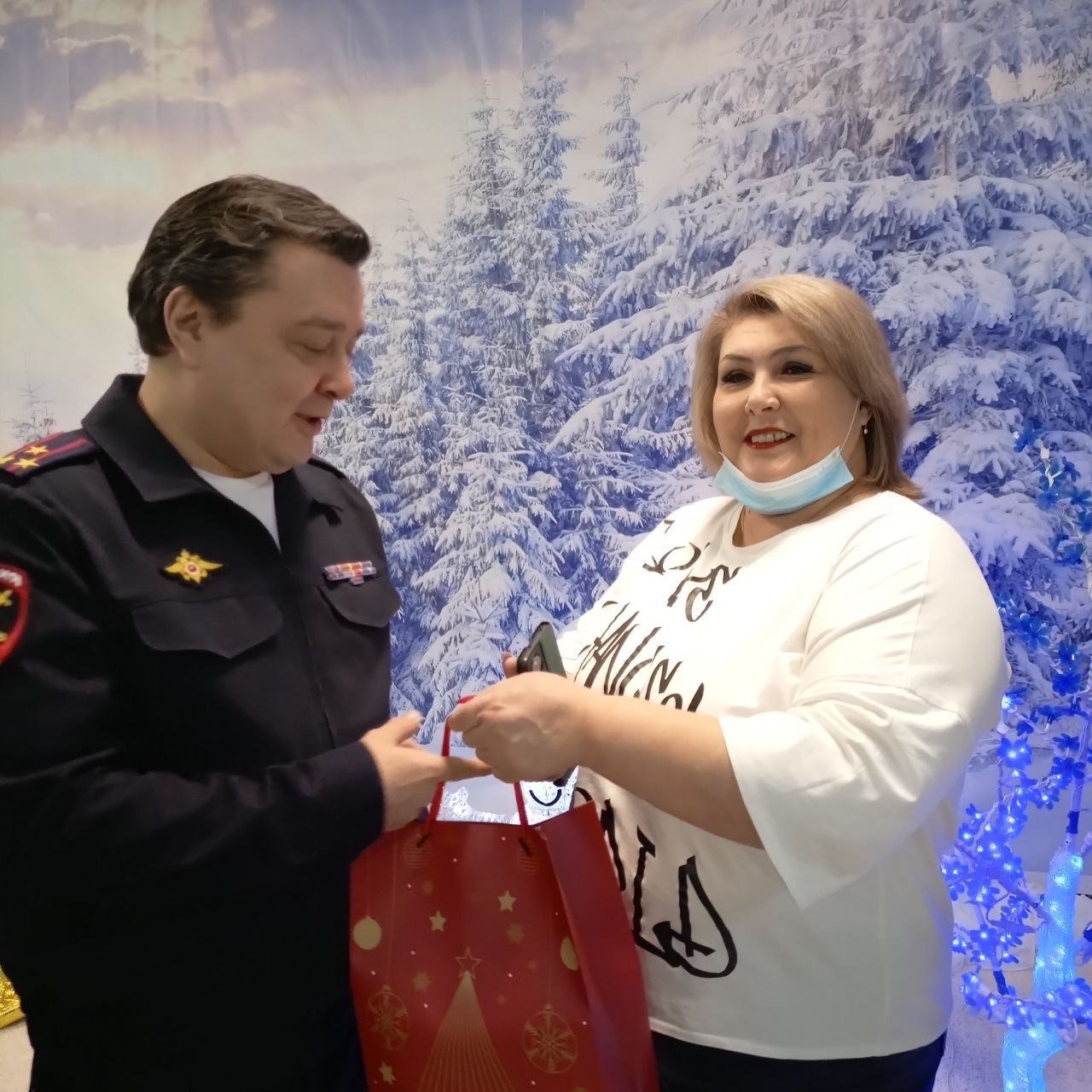 В ходе мероприятия ребятишкам подарили сладкие подарки от сотрудников и ветеранской организации подразделения. Ребята рассказывали стихи и очень обрадовались встрече с транспортными полицейскими.