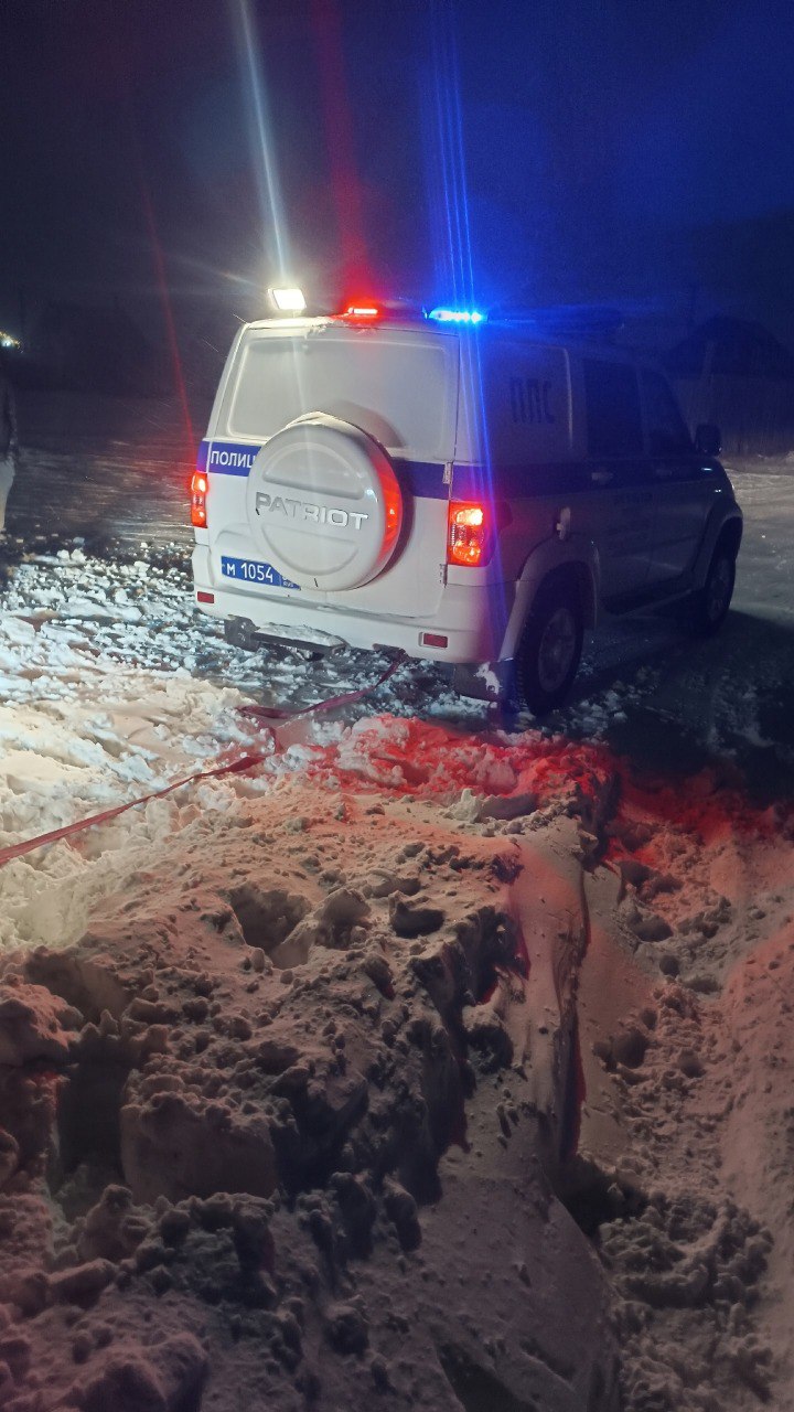 Их заметил экипаж патрульно-постовой службы, который в тот момент выполнял служебные обязанности. Несмотря на сложные погодные условия, сотрудники полиции вместе с отзывчивым водителем на автомобиле «Subaru» незамедлительно остановились и помогли выбраться из сугроба.
