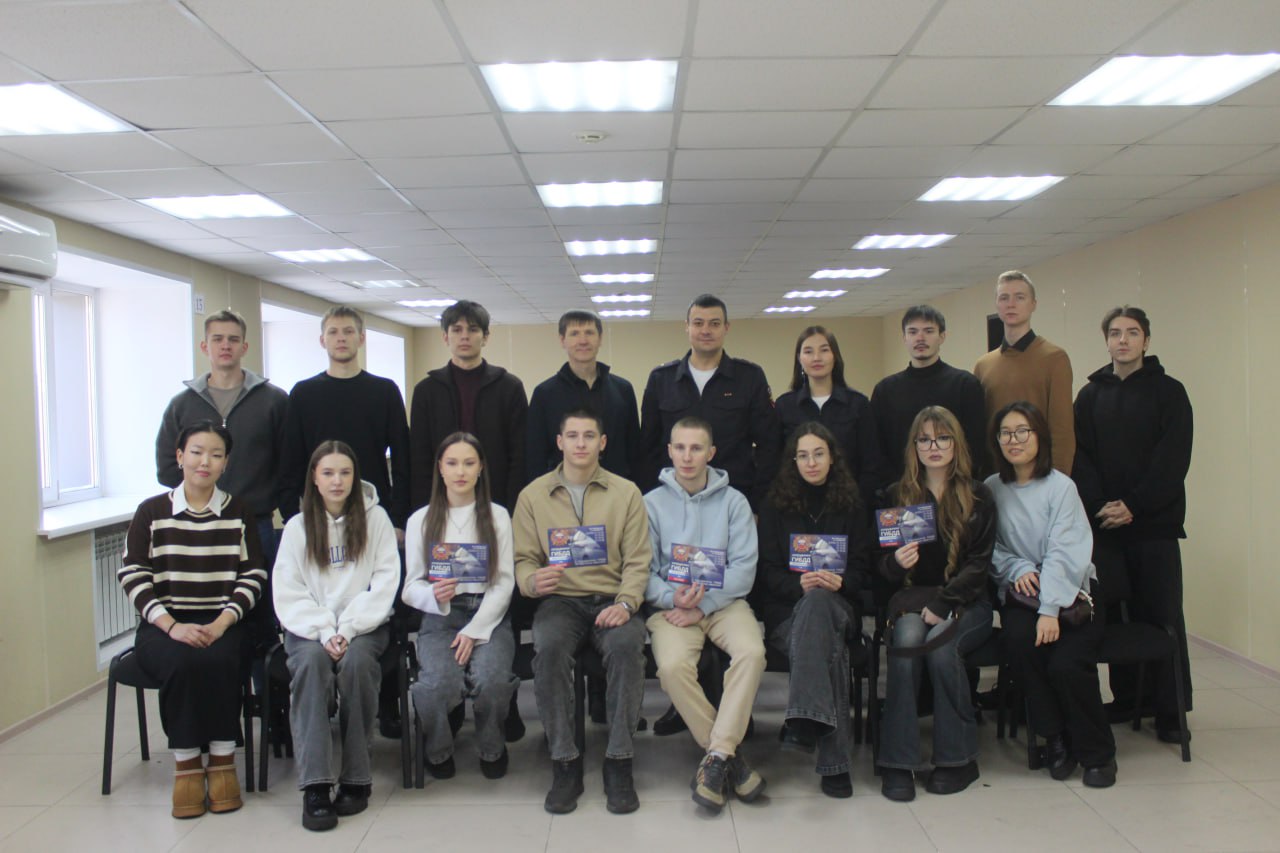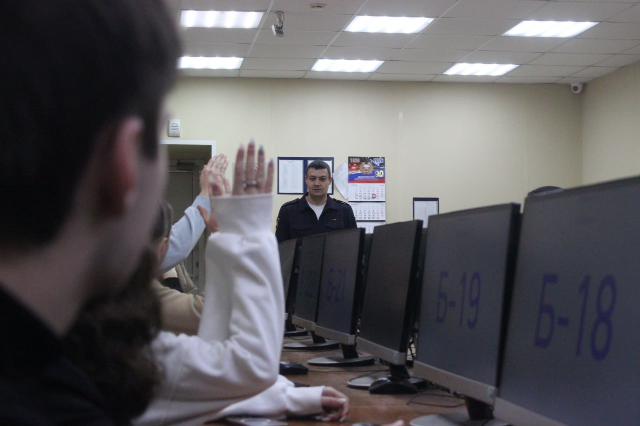 Заместитель командира отдельного батальона ДПС Госавтоинспекции МУ МВД России "Иркутское" капитан полиции Михаил Ларионов рассказал студентам об особенностях службы в органах внутренних дел, порядке поступления, социальных гарантиях и требованиях к физической подготовке кандидатов, а также ответил на вопросы ребят.
