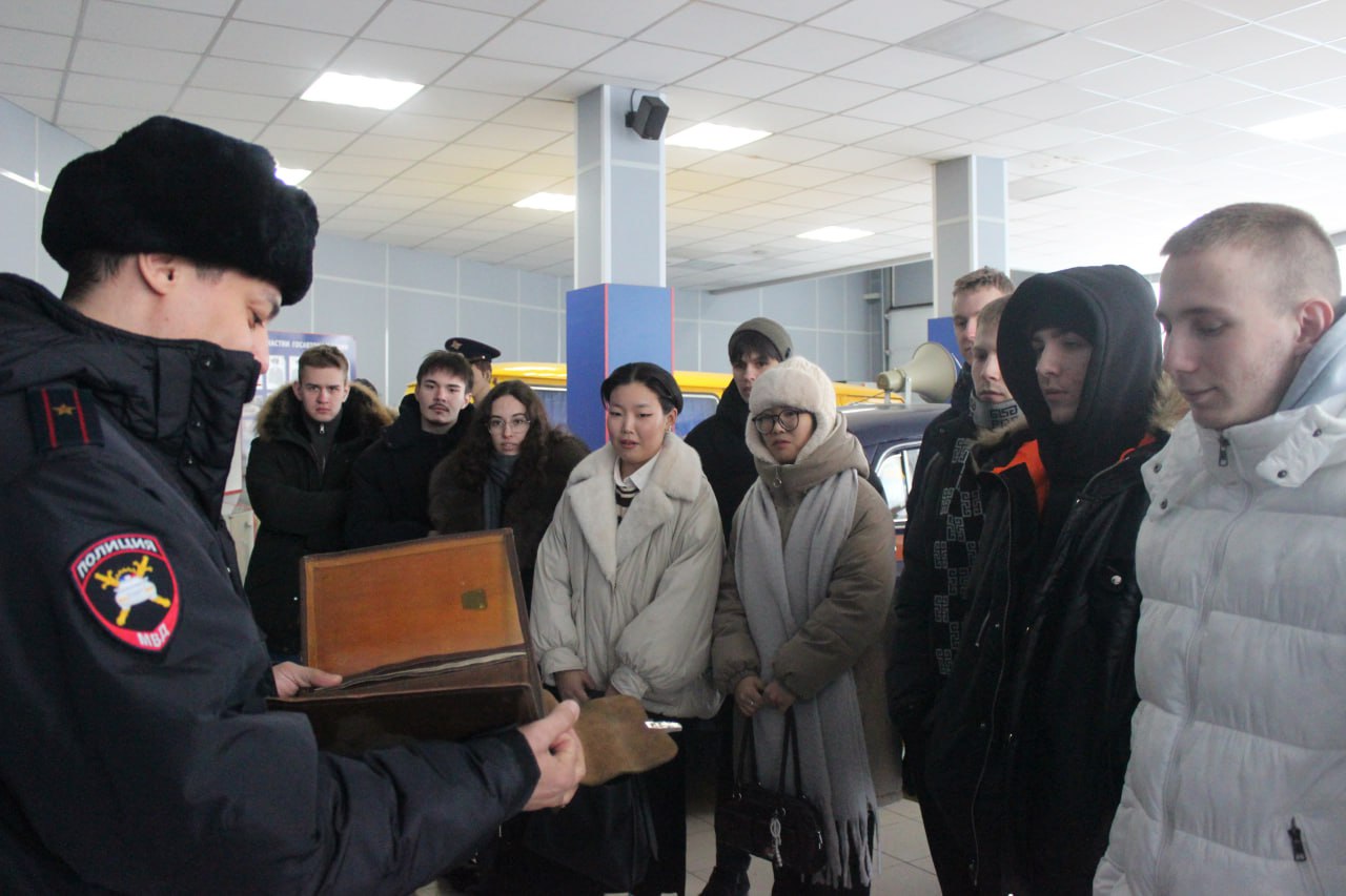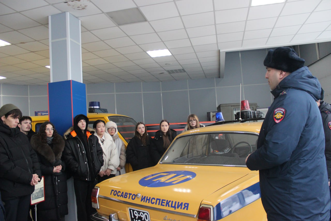 Одной из интересных частей экскурсии стало посещение музея Госавтоинспекции. Здесь студенты смогли увидеть богатую историю ГАИ, от истоков до современных достижений.Особое восхищение вызвала экспозиция ретро-автомобилей: легендарные «Волги», «Москвичи» и другие машины прошлых десятилетий погрузили студентов в атмосферу советских фильмов. У участников акции также была возможность увидеть специальные технические средства, которые использовались в разное время как советской милицией, так и российской полицией.