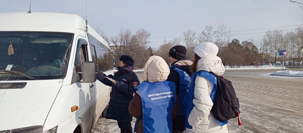 Акция Опасная зимняя дорога прошла совместно с волонтёрами из Шелеховского отделения Иркутского регионального волонтёрского центра. Её целью стало привлечение внимания водителей такси и маршрутных транспортных средств к проблеме травматизма на дорогах.