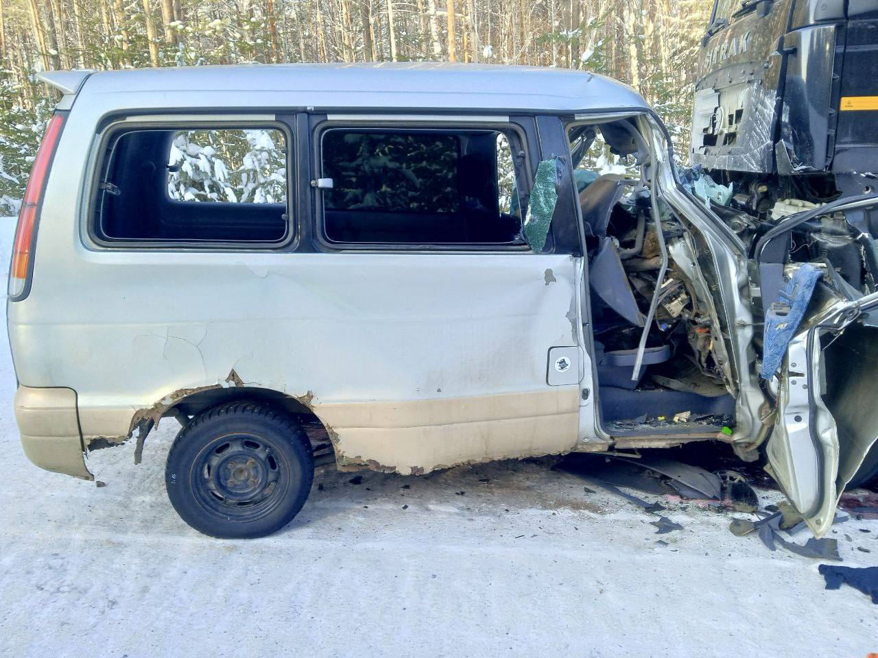 В результате ДТП водитель минивэна скончался от полученных травм на месте. Водитель грузового автомобиля не пострадал.