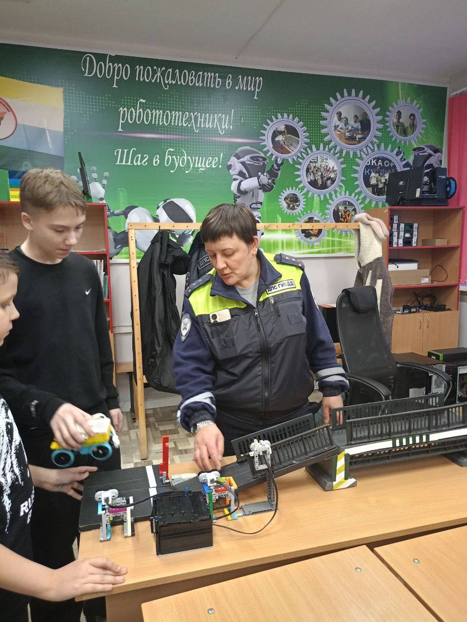 Ребята старших классов показали готовый проект моста с однополосным движением: для безопасного проезда он оборудован датчиками движения, светофорным объектом и шлагбаумом. Заместитель начальника Госавтоинспекции МО МВД России Усть-Кутский Светлана Винникова дала несколько советов по усовершенствованию проекта для дальнейшего участия в чемпионате по робототехнике в городе Красноярске.