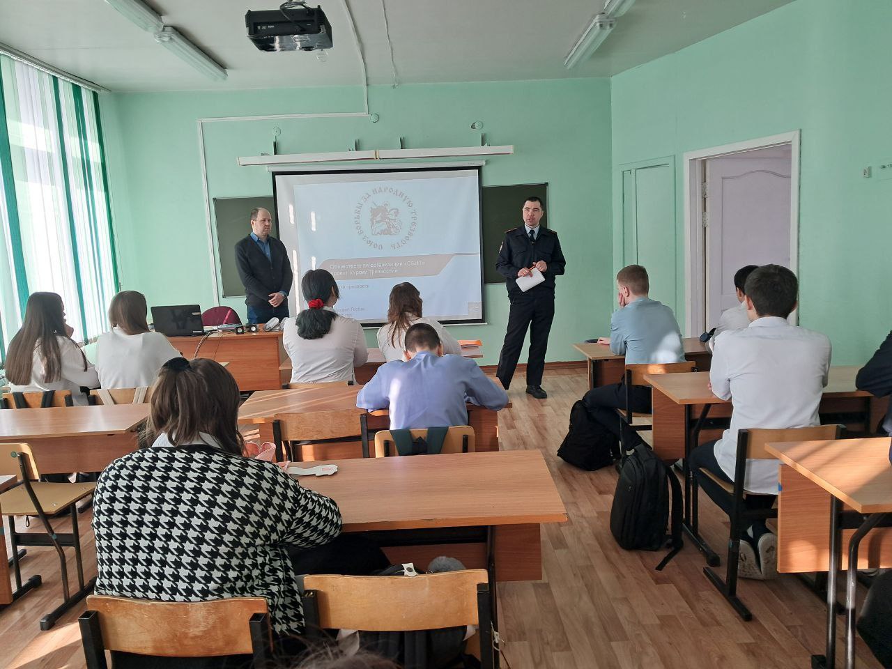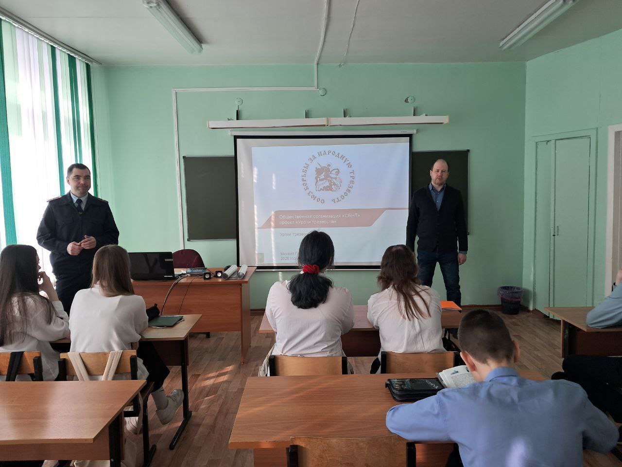 Начальник отделения по делам несовершеннолетних Братского ЛО МВД России на транспорте Михаил Темников совместно с представителем общественного движения "Мой Братск", руководителем проекта "Трезвые Дворы"Михаилом Горбиком провели урок в средней школе № 4 г. Братска