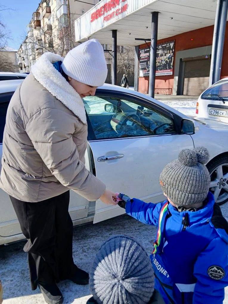 Ребята со всей серьезностью и ответственностью раздавали всем женщинам сердечки с конфетами и поздравляли с наступающим праздником. Воспитатели напоминали, что всегда нужно пристегивать ремень безопасности, соблюдать скоростной режим.