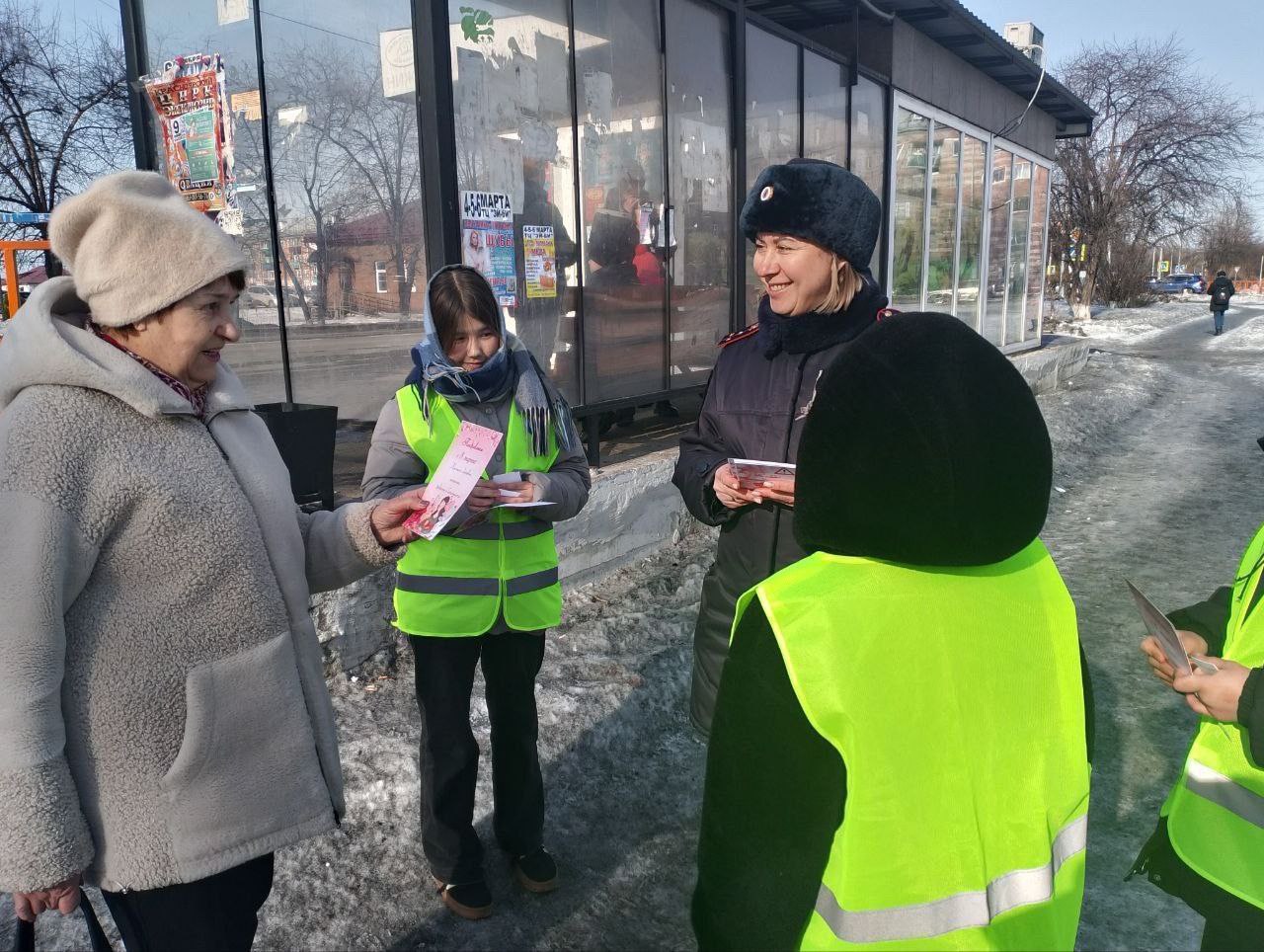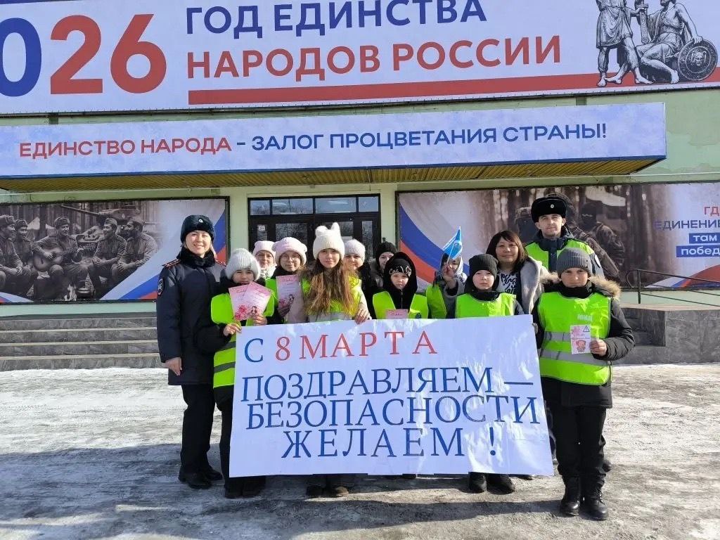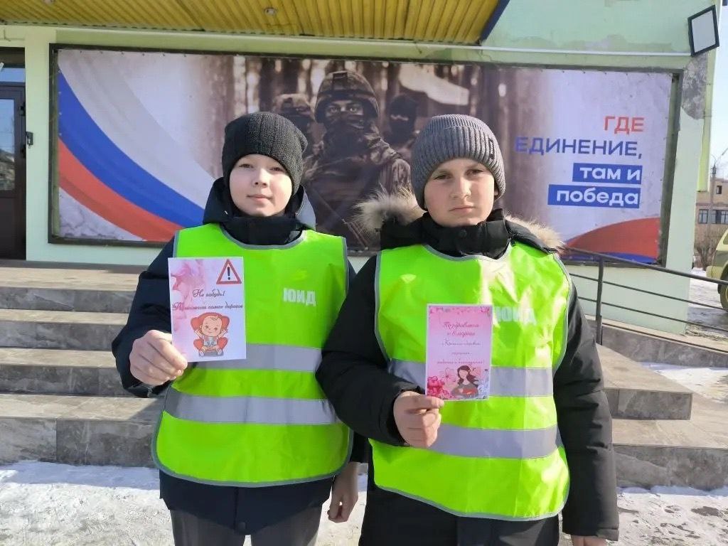 В преддверии Международного женского дня дорожные полицейские совместно с юными инспекторами движения школ города Нижнеудинска поздравили женщин-пешеходов с наступающим праздником.
