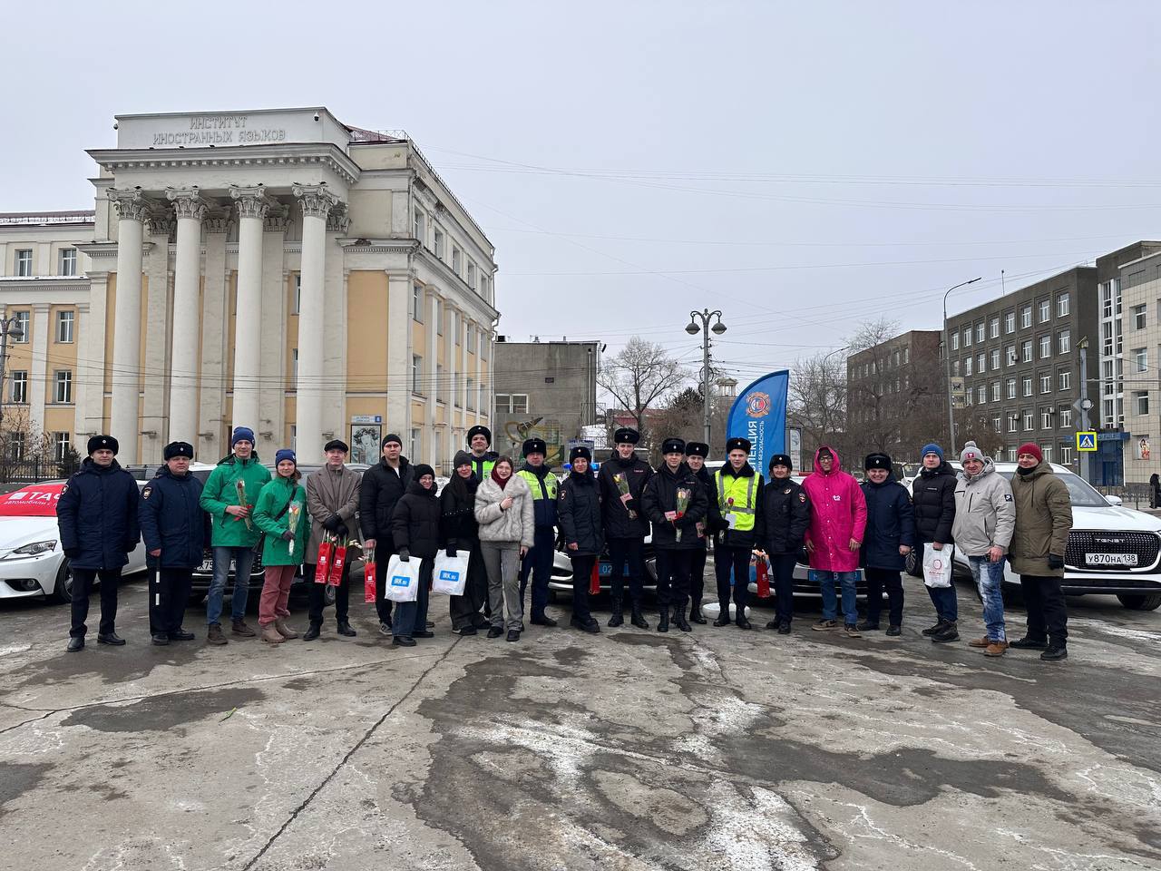 В Иркутске сотрудники Госавтоинспекции поздравили женщин-водителей с наступающим Международным женским днём