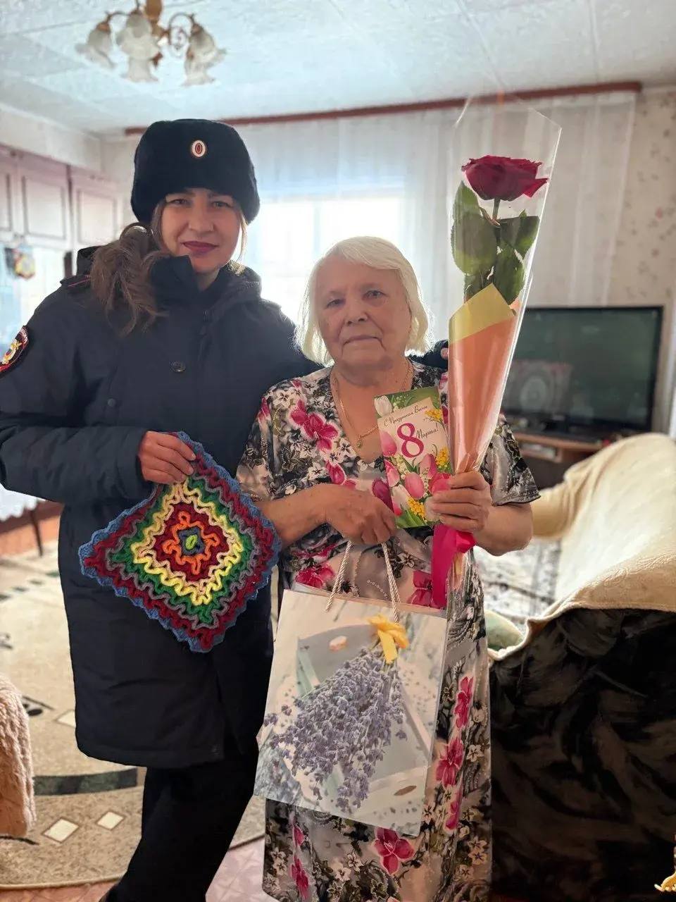 По сложившейся традиции полицейские поздравили вдов и матерей с весенним праздником, вручили женщинам цветы, красочные открытки и подарки. Как отметили полицейские, женщины были приятно тронуты вниманием и теплыми словами в канун весеннего праздника 8 Марта.