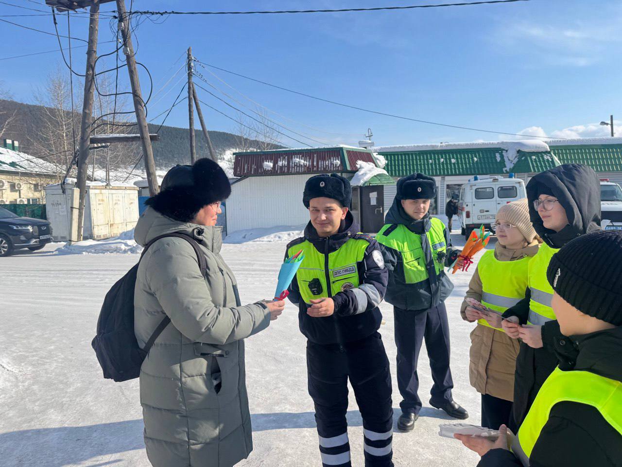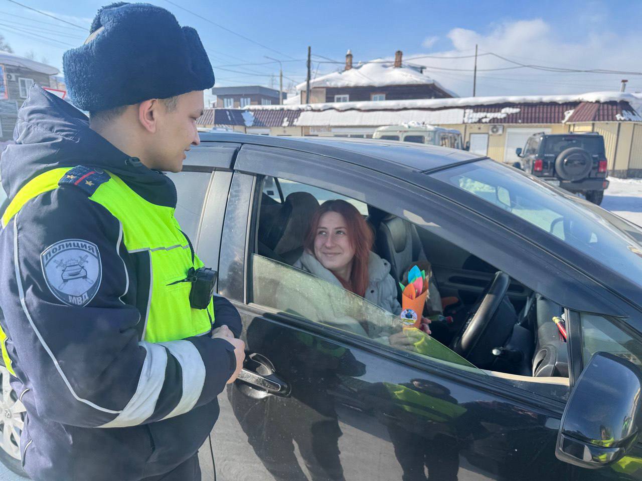 В Киренске сотрудники Госавтоинспекции совместно с ЮИДовцами провели акцию «С 8 марта поздравляем – ПДД не нарушаем!»