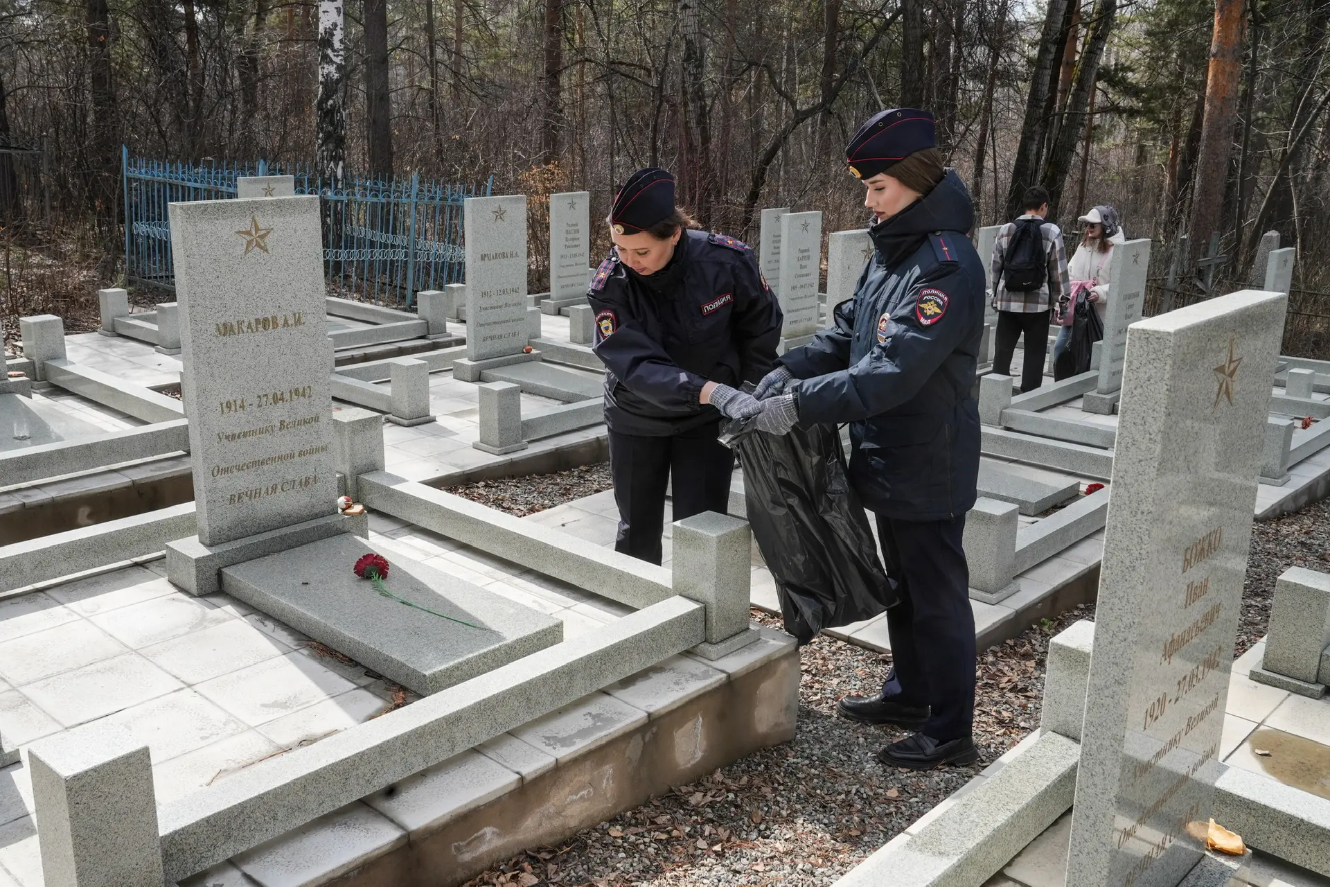 Сотрудники регионального Главка МВД,Межмуниципального управления МВД России «Иркутское», курсанты Восточно-Сибирского института МВД России, спасатели, представители социального фонда,духовенства,иркутскстата, учащиеся образовательных учреждений региона ,а также волонтеры привели в порядок территорию кладбища: очистили от мусора и прошлогодней листвы захоронения солдат Красной армии, сделали обрезку деревьев и кустарников.