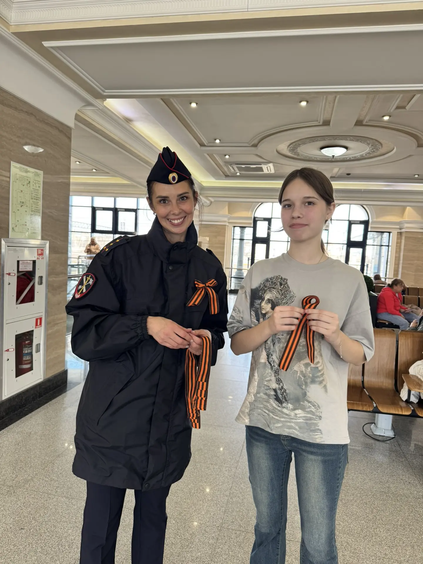 Сотрудники линейного управления поздравили с приближающимся праздником Победы жителей и гостей города. Всероссийскую акцию «Георгиевская ленточка» транспортные полицейские провели на железнодорожном вокзале г. Иркутска.