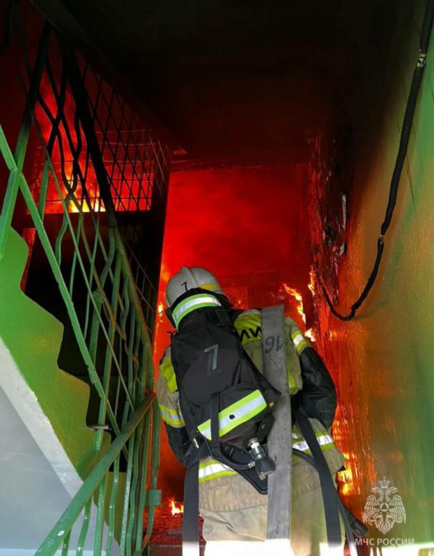 Днем на улице Розы Люксембург загорелась квартира на последнем этаже девятиэтажки. К месту были направлены 18 пожарных, 6 единиц техники.Звеном газодымозащитной службы с помощью спасустройств из задымленного подъезда по лестничным маршам спасены 7...