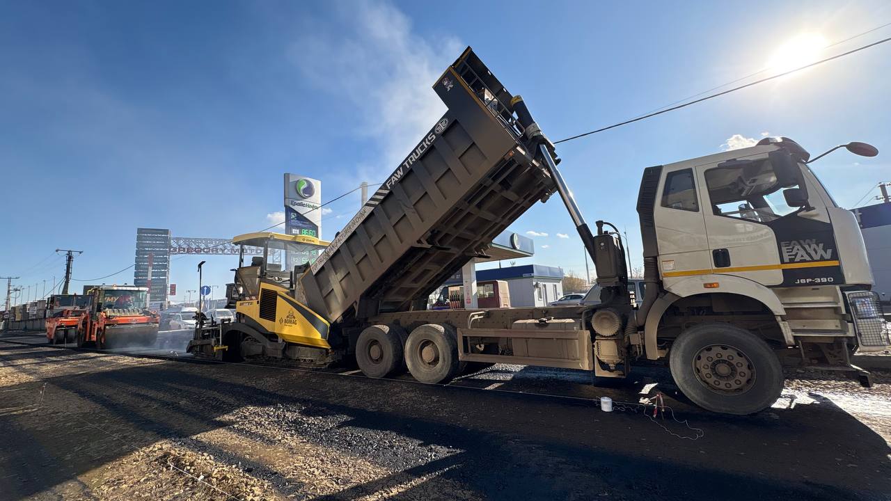 На улице Баррикад в Иркутске продолжается асфальтирование проезжей части.