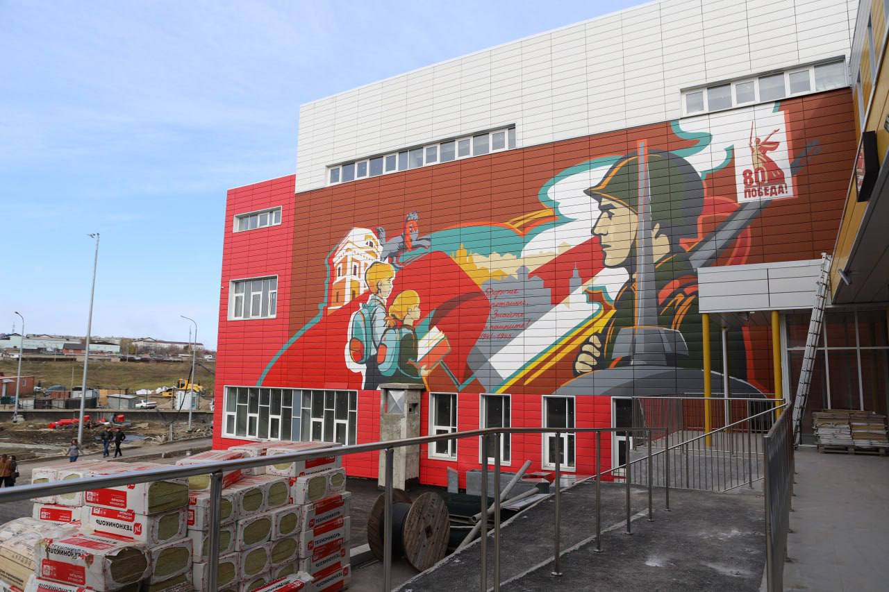 – Мы на финишной прямой. Заканчиваем строительство самой большой школы в городе. Готовность составляет 90 %. Подрядчик ответственный, работает с опережением графика. Ежедневно на площадке задействованы около 200 человек и 12 единиц техники. К 1 ноября планируют начать пуско-наладочные работы, а в начале года – сдать полностью готовый объект, – отметил Руслан Болотов.– Школу оформляем с акцентом на 80-летие Великой Победы. На фасаде уже разместили масштабное художественное панно с монументальными изображениями героев, символикой России. А внутри будут пространства, посвященные участникам СВО и ключевым событиям отечественной истории.