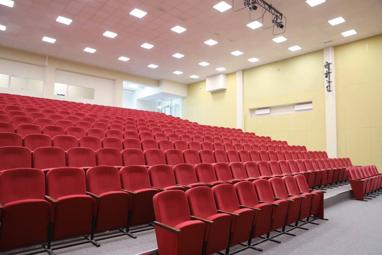 Помимо учебных кабинетов в здании размещен 25-метровый бассейн, спортзал, библиотека, столовая, медкабинет, зрительный зал на 550 мест, камерный амфитеатр, студия звукозаписи, хореографический зал.