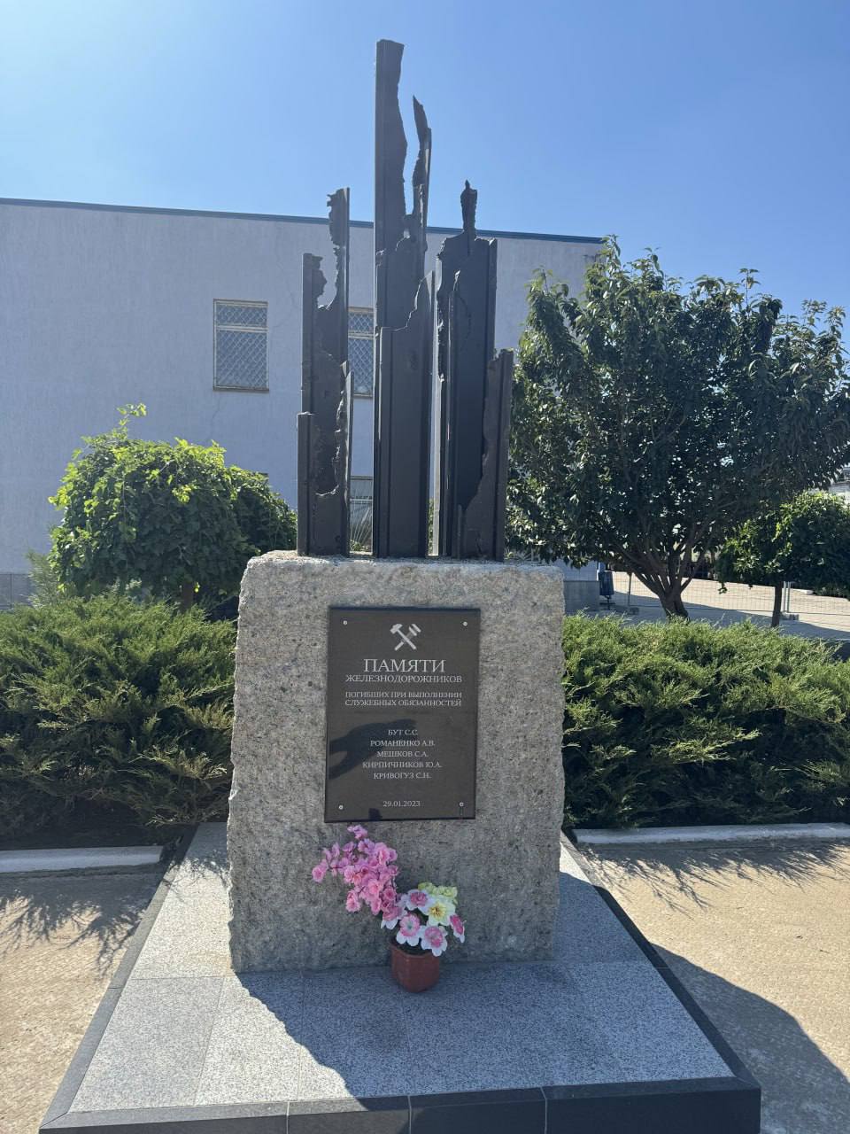 Недалеко от железнодорожного вокзала – памятник работникам железной дороги, погибшим во время ракетного удара ВСУ по Мелитопольскому депо 29 января 2023 года.