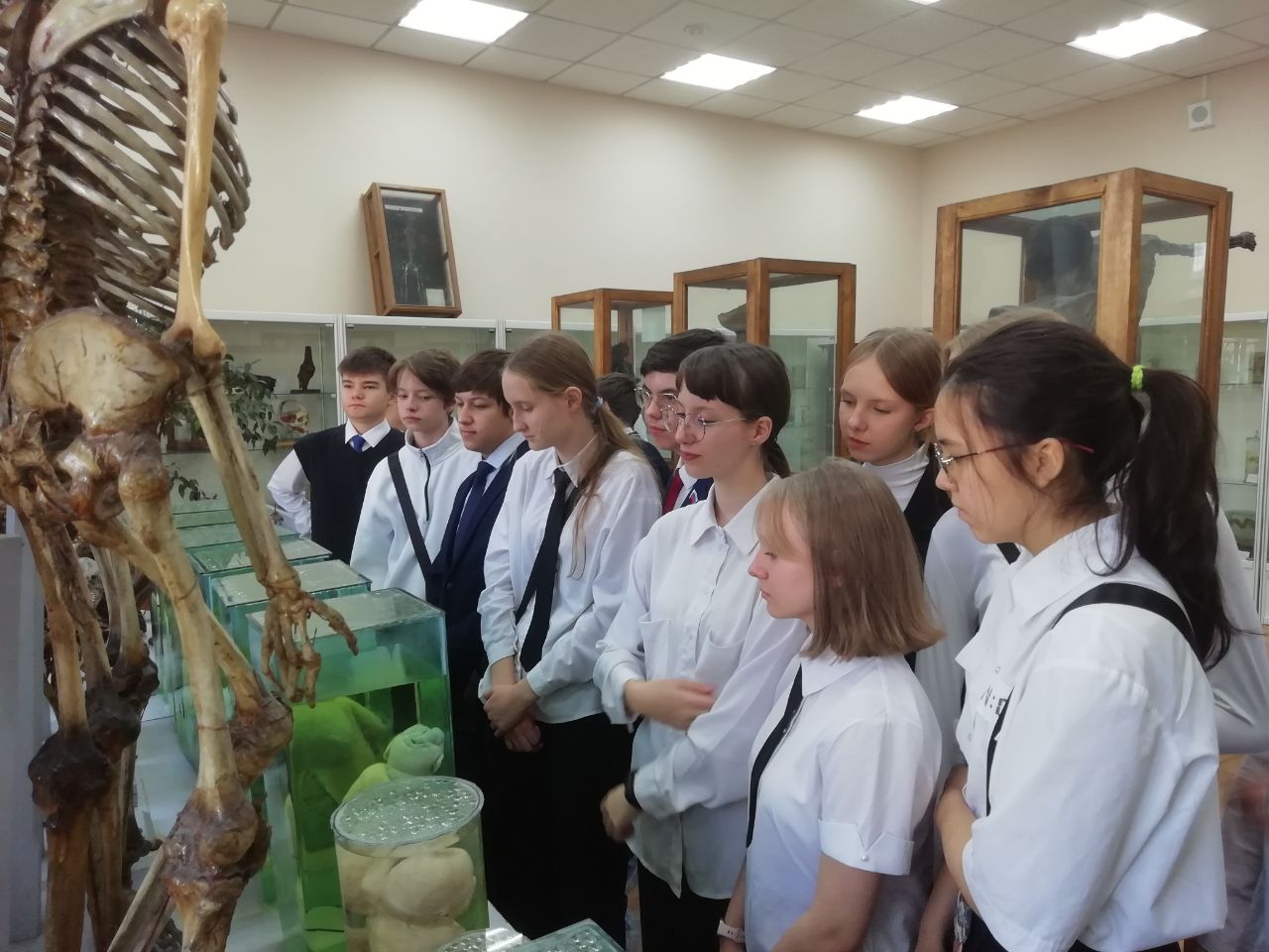 Во время экскурсии 18 учеников 8 «А» класса увидели уникальные экспонаты, демонстрирующие последствия воздействия никотина, алкоголя и наркотических средств на организм человека, включая сравнительные образцы здоровых и поврежденных органов, а также эмбрионы с аномалиями развития.