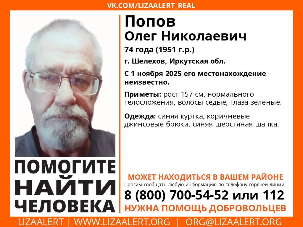 Пропал #Попов Олег Николаевич, 74 года, г. #Шелехов, Иркутская обл.