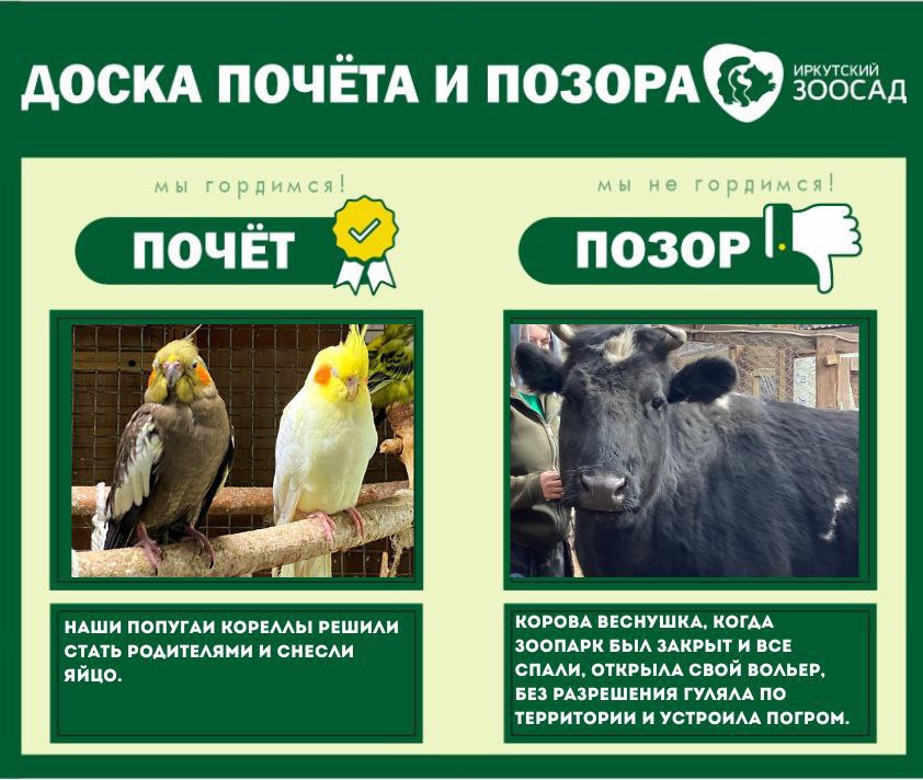 Время поднимать настроение, поэтому мы делимся с вами рубрикой от Иркутского зоосада «Доска почета и позора»