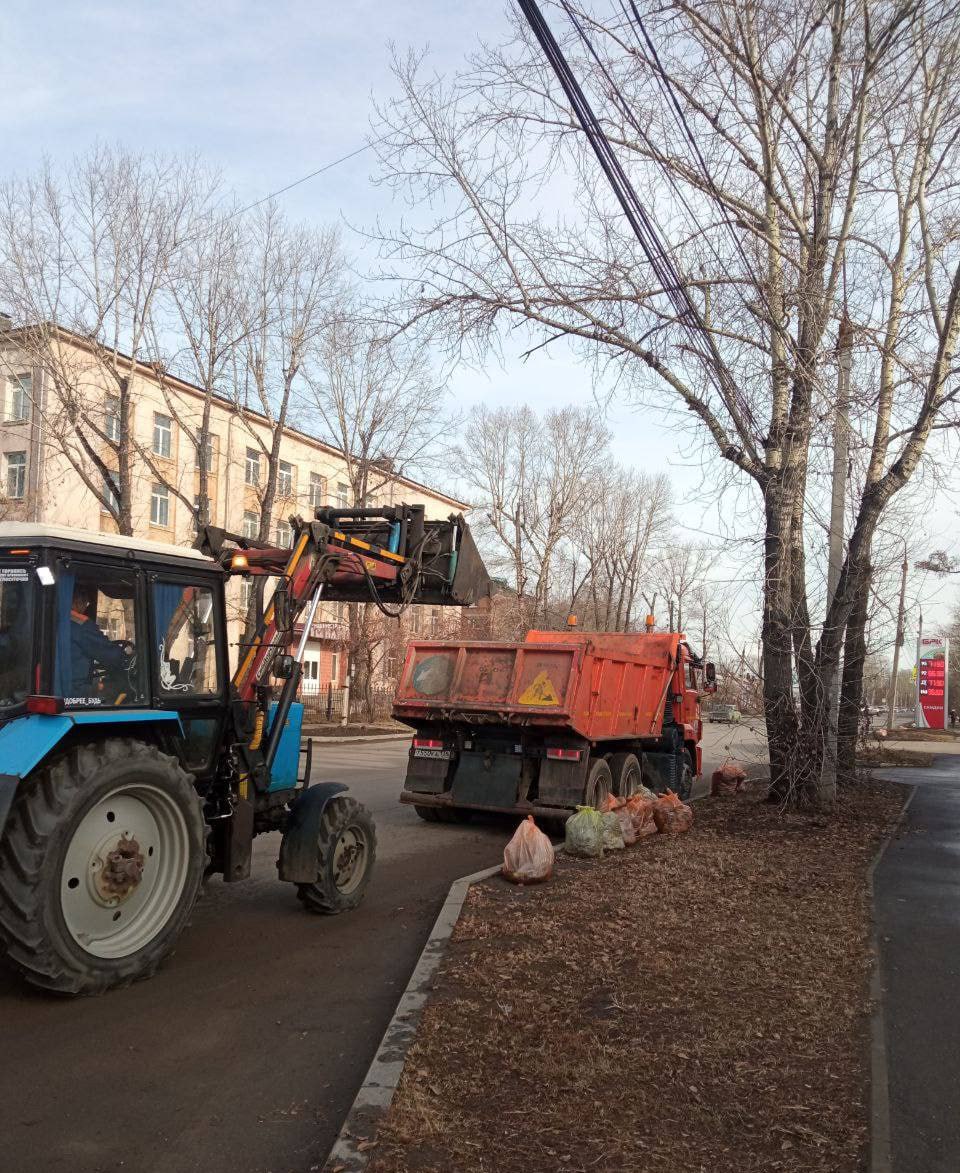 Специализированная техника подметала на Красноказачьей, Плеханова, Трудовых Резервов и Байкальской. Бригады вручную очищали зеленые зоны, пешеходные пространства и дорожные лотки, собирали мусор на Омулевского, Сударева, Рабочей, Сухэ-Батора, Ленина, Польских Повстанцев, Российской, Октябрьской Революции, Коммунаров, Волжской, Грязнова, 5-й Армии, Дыбовского, Лыткина, Тимирязева, Канадзавы, Фаворского, Мелентьева, Трактовой, Сергеева, Авиастроителей, Макаренко, Ярославского и других.