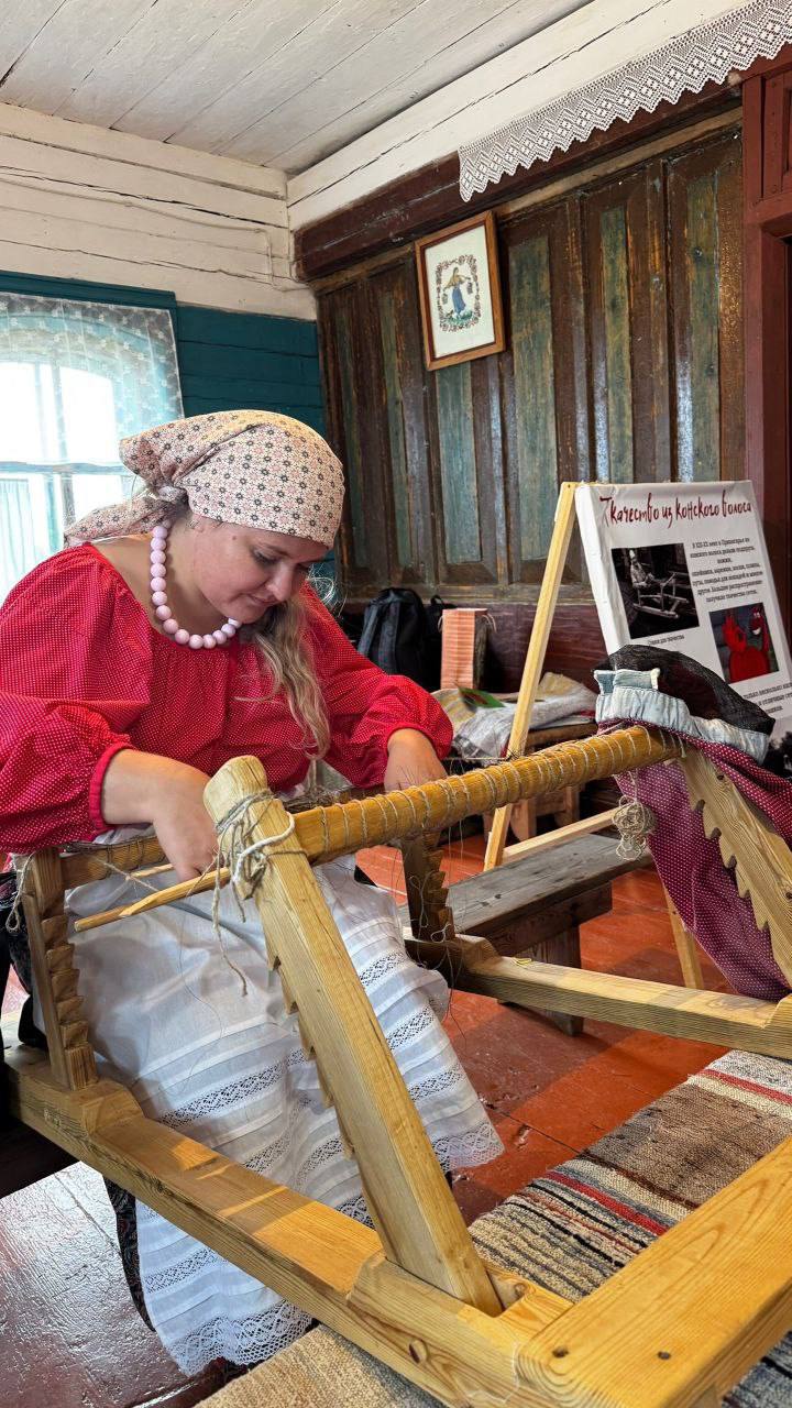 Всё началось с изучения музейных экспонатов. Затем на основе старинных образцов сотрудники музея создали копию станка и попробовали воспроизвести технику. Теперь в музее проходят мастер-классы, на которых можно узнать как ткали предки.