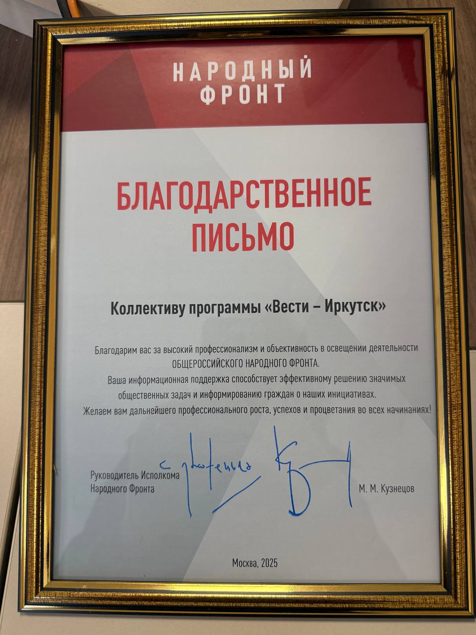 В редакцию "Вести-Иркутск" с поздравлениями приходили представители Народного фронта. Вручили благодарственное письмо и сладкий подарок.