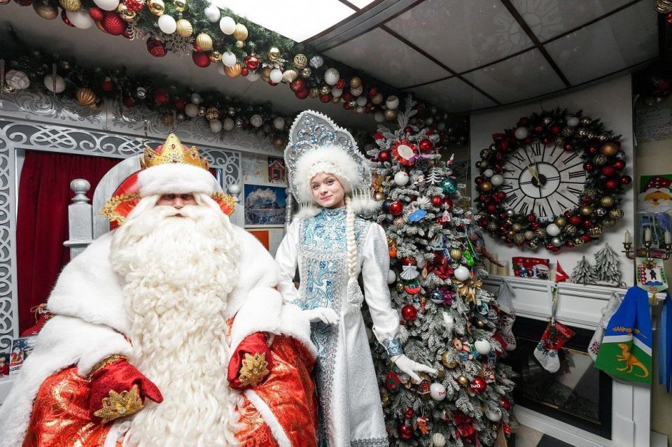 С наступающим Новым годом юных и взрослых иркутян поздравил Дед Мороз из Великого Устюга, который путешествует по железным дорогам России.