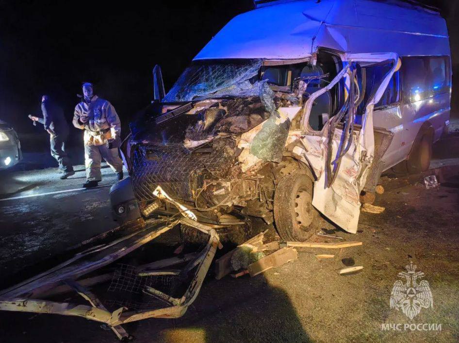 ДТП произошло на 48-м километре автодороги: микрогрузовик с древесиной выехал на встречку и врезался в рейсовый "Форд Транзит". Один человек скончался на месте. Водитель микрика и ещё трое получили травмы — их доставили в больницу.