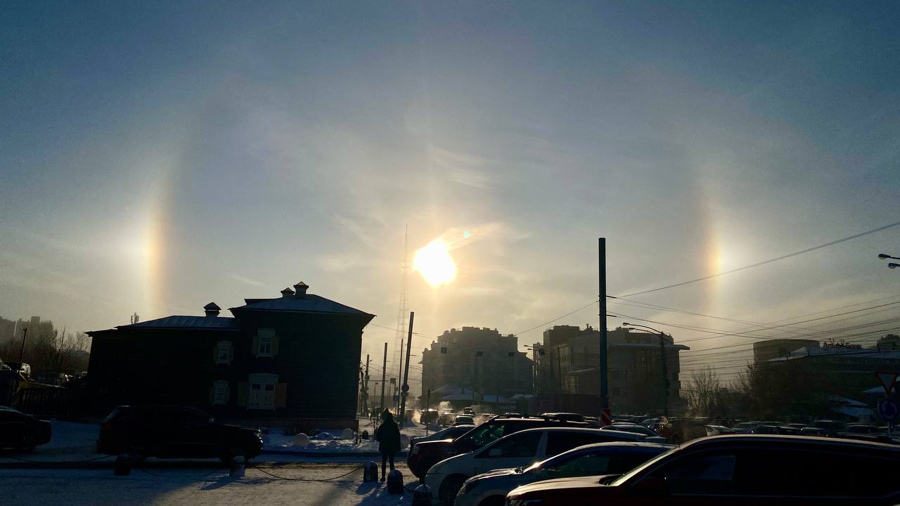 Сегодня иркутяне наблюдали солнечное гало. Этот оптическое явление чаще всего проявляется в ясную морозную погоду при повышенной влажности. Снимок был сделан на улице 3-го Июля. А вы успели заметить эту красоту?