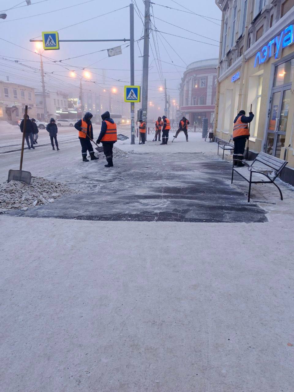 За прошедшие сутки грейдирование провели на улицах Сергеева, Аргунова, Пискунова. Снег вывезли с Бочкина, Чкалова, Пискунова. Песко-соляной смесью обработали все магистральные улицы, а также Сарафановскую, Слюдянскую, Ленскую и другие.