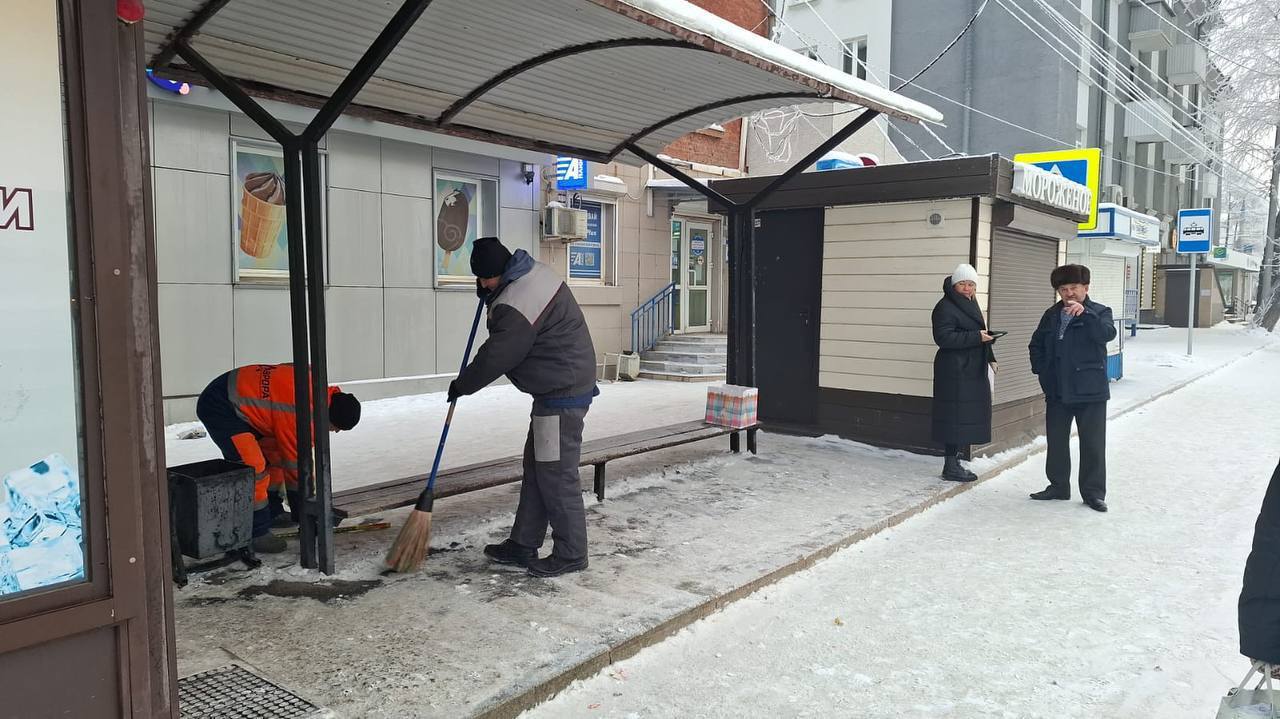 По поручению мэра Руслана Болотова на особом контроле находится уборка тротуаров и остановочных пунктов.