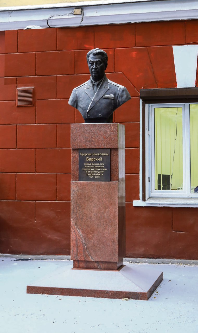 Памятник первому восточносибирскому транспортному прокурору Георгию Яковлевичу Барскому находится на улице 5-й Армии. Этот бронзовый бюст установили совсем недавно, 5 сентября, возле здания Байкало-Ангарской транспортной прокуратуры, которую он возглавлял десять лет.