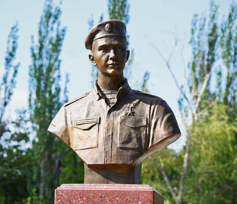 Бюст иркутянина — Героя России Эдуарда Дьяконова установлен в Мариуполе, а проектировали его в Иркутске: архитектор Евгений Третьяков и скульптор Евгений Ставский.