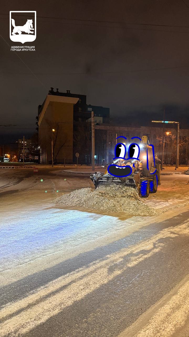 Доброй ночи, Иркутск! Трудолюбивый тракторёнок усердно работает, очищая дороги нашего города. Посмотрите, сколько снега уже собрано. Настоящий мастер своего дела!Мэрия Иркутска работает для вас с заботой)#Жизнь_иркутских_тракторят